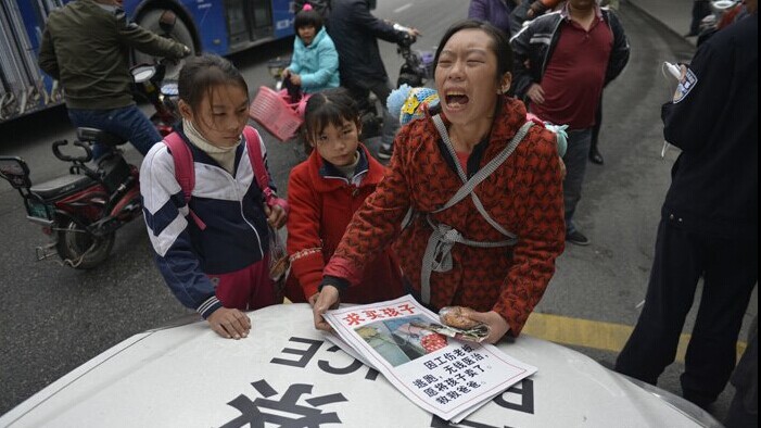 丈夫重伤住院 女子为救夫街头跪地卖女儿