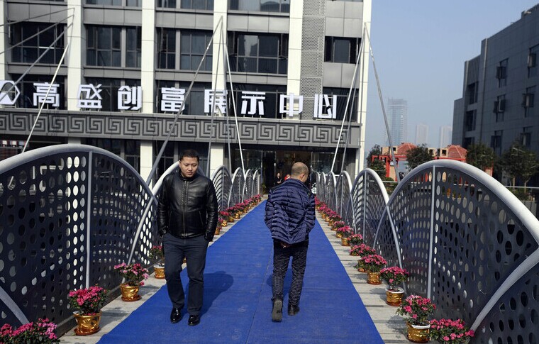2014年12月29日,重庆解放碑附近一新建楼盘,为了出入方便,在22层高楼的外墙上,分别搭建了两个钢结构的人行天桥。
