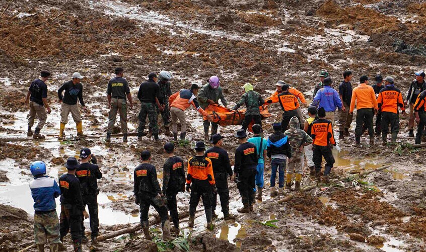 每年11月至次年4月是印尼的雨季,由强降雨和洪水引起的山体滑坡多发。印尼国家抗灾署估计,全国2.5亿人口中,大约一半人居住在山体滑坡易发地区。图为泥石流事故现场。